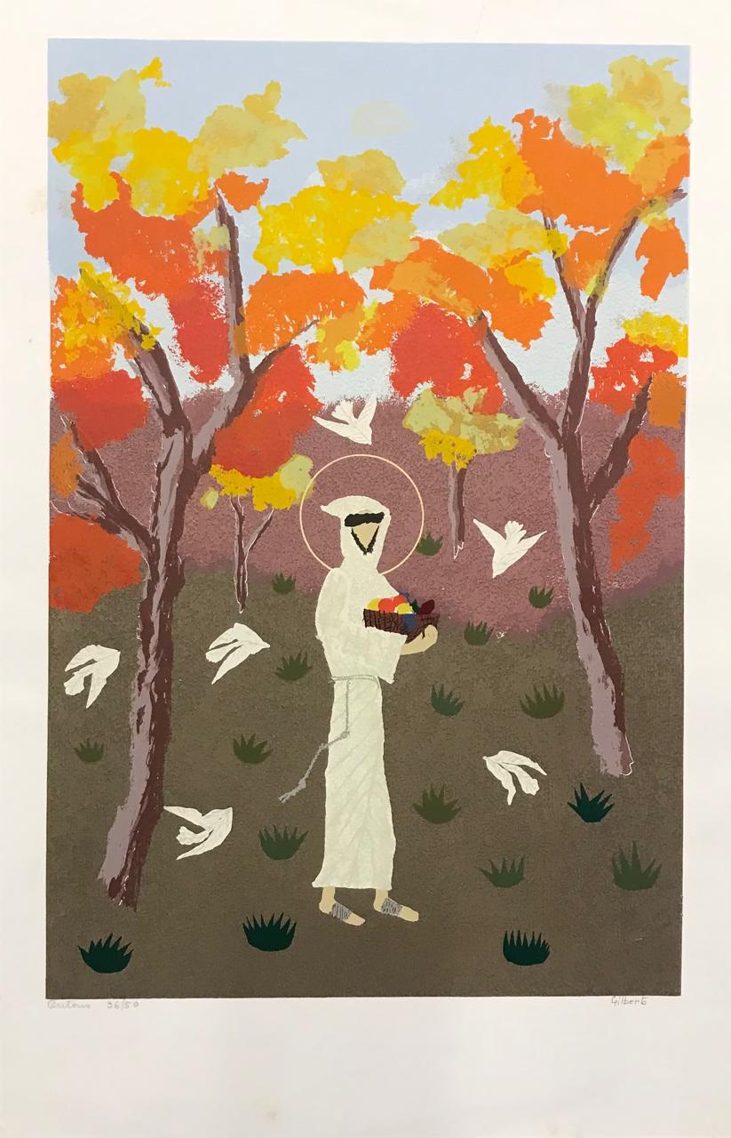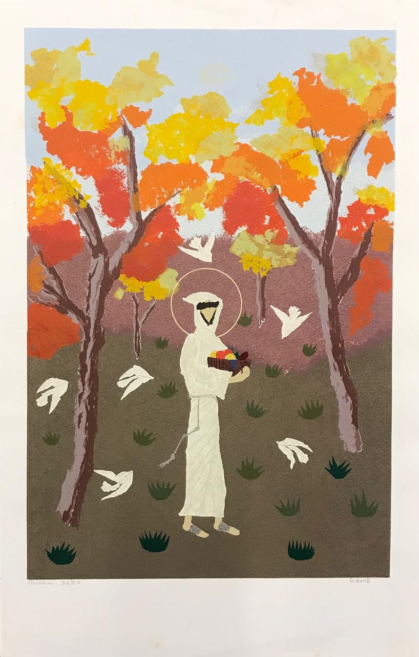 Gilberto Mello nasceu em Santo Antônio de Jesus, na Bahia, em 1927. Se formou em Engenharia Agrônoma e também artista autodidata. Estudou Botânica Sistemática e Herbário, que é uma técnica de secagem realizadas em espécies vegetais, que utilizou como base para estudos de seus primeiros trabalhos artísticos. Em 1963, se mudou para Brasília. O tema principal de suas obras é São Francisco de Assis. Após uma viagem para Assis, na Itália, após perceber a relação em agronomia e a vocação e amor do santo com a natureza. Em 1965, realizou sua primeira exposição no Hotel Nacional de Brasília. Em Brasília, também decorou com entalhes a Igreja Metodista da cidade. Recebeu a premiação de menção honrosa em talha e em colagem, além de medalhas de ouro e bronze no III Salão da Inconfidência. Em 1971, teve sua obra adquirida pelo Governo do Estado do Rio Grande do Norte e duas pelo Governo do Distrito Federal. Em 1973, ofereceu uma obra ao ministro da Educação, que entregou como presente protocolar ao ministro da Educação de Portugal. Suas obras estão expostas na sede de Confederação Nacional dos Bispos (CNBB) e também no Museu de Arte de Brasília (MAB).