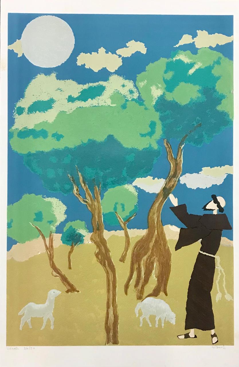Gilberto Mello nasceu em Santo Antônio de Jesus, na Bahia, em 1927. Se formou em Engenharia Agrônoma e também artista autodidata. Estudou Botânica Sistemática e Herbário, que é uma técnica de secagem realizadas em espécies vegetais, que utilizou como base para estudos de seus primeiros trabalhos artísticos. Em 1963, se mudou para Brasília. O tema principal de suas obras é São Francisco de Assis. Após uma viagem para Assis, na Itália, após perceber a relação em agronomia e a vocação e amor do santo com a natureza. Em 1965, realizou sua primeira exposição no Hotel Nacional de Brasília. Em Brasília, também decorou com entalhes a Igreja Metodista da cidade. Recebeu a premiação de menção honrosa em talha e em colagem, além de medalhas de ouro e bronze no III Salão da Inconfidência. Em 1971, teve sua obra adquirida pelo Governo do Estado do Rio Grande do Norte e duas pelo Governo do Distrito Federal. Em 1973, ofereceu uma obra ao ministro da Educação, que entregou como presente protocolar ao ministro da Educação de Portugal. Suas obras estão expostas na sede de Confederação Nacional dos Bispos (CNBB) e também no Museu de Arte de Brasília (MAB).