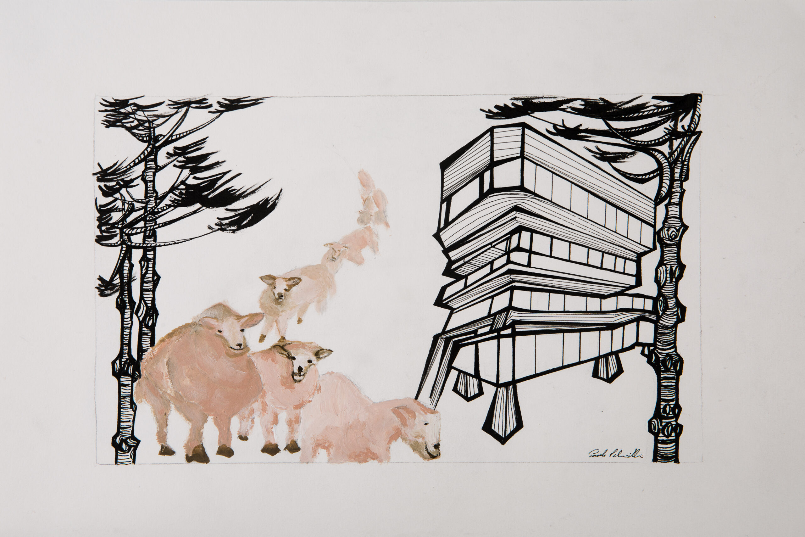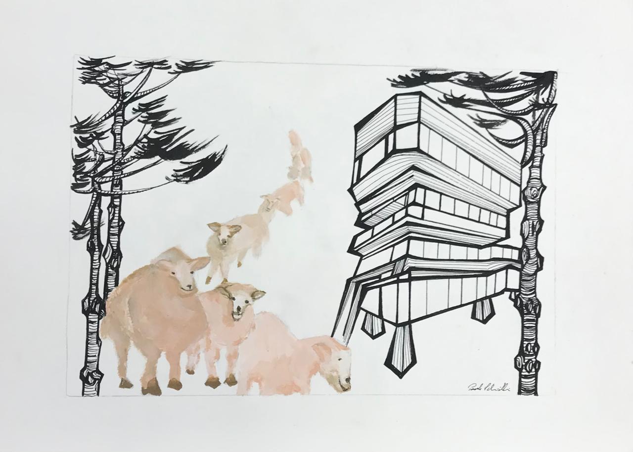 Título: Sem título (prédio e ovelhas)
